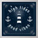 High Tides Good Vibes pour ceux qui aiment les graphismes marins comme les ancres et phares ainsi que les mouettes et coquillages. Pour ceux qui se demandent ce que High Tides signifie, Good Vibes signifie que le bonheur arrive par vagues et une perspective positive dans la vie. Il peut être un cadeau pour les Anniversaires, Anniversaires ou Fêtes pour un ami ou une famille. Créé avec une écriture et une illustration personnalisée unique pour ceux qui aiment les styles uniques et romantiques ! Conçu par Katrina Sutton.