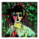 This hauntingly beautiful portrait features a mysterious woman surrounded by abstract greenery and rich, painterly textures. With gothic and surreal undertones, it blends elegance with emotional depth — perfect as a bold art print for those who love dark romanticism, expressive femininity, and unconventional beauty.