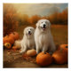 Poster Grand Pyrénées Chiot automne délice Citrouille