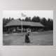 La photo de la femme en robe longue sur le terrain de golf dans le vieux des années 1910, Hotel Champlain, Bluff Point, New York. Maison club dans l'arrière - plan.