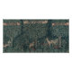 forest landscape with pear chestnut and oak trees, shrubs, flowers, and animals such as deer, rabbits, and a fox.