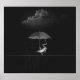 Une grenouille danse avec un parapluie dans ce design d'orage noir et blanc.