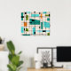 Cette Poster Retro Grid et Starbursts est l'endroit où le style vintage rencontre les jours modernes. Arrière - plan de couleur crème avec kitschy, carrés de kilter et rectangles turquoises, turquoise, bleu clair, orange et vert avocat. Les blocs de couleur fantaisiques sont superposés dans certaines intersections de grille. Il y a aussi des rectangles noirs avec des lignes verticales et horizontales noires formant un motif de grille. Des créations de starburst noir et des carrés placés sporadiquement tout au long de cette tapisserie moderne de couleur du milieu du siècle. Attrapez vos bottes de départ et vos clochers et profitez de ce retour aux années 1960.