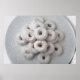 Gros plan de beignets en poudre dans une assiette. Copyright : Glowimages