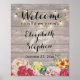Élégant guirlande lumineuse moderne et chic vintage et panneau de mariage floral avec fond en bois rustique naturel. Affiche.