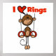 Un gymnaste de singe figuré sur les anneaux et le texte "I (heart) Rings" sur les T-shirts, sweat - shirts à capuche, tasses, cartes, autocollants, sacs fourre-tout et autres vêtements et cadeaux de gymnaste design.