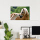 Chevaux haflinger, jument avec poulain côte à côte, câlins. Le mignon petit cheval se tourne en toute confiance vers sa maman, les mignonnes ponies photographiées par Katho Menden, pour les chevaux. http://www.zazzle.com/kathom_photo
