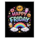 A cheerful, colorful celebration of joy and positivity featuring smiling suns, rainbows, treats, and playful icons to welcome the happiest day of the week.