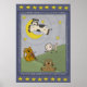 Hey Diddle Diddle Comptine affiche de nurserie, mignonne et amusante, idéale pour la chambre de votre bébé, représente une vache sautant par-dessus la lune, un chat et un violon, le chien qui rit, et l'assiette et la cuillère ainsi que de nombreuses étoiles dans un ciel bleu foncé !