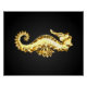 Artistique, polygonale, hippocampe de mousseux, feuille d'or sur arrière - plan noir.