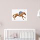 Impression originale d'une affiche d'un cheval de course et d'un jockey de race Thoroughbred pour les amateurs de chevaux par l'illustratrice Carolyn McFann de Two Purring Cats Studio.