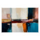 Cette pièce abstraite explore la tension entre les couleurs vives et les formes douces, évoquant un horizon brisé par les émotions et les souvenirs. Les bleus, les oranges et les rouges s'entrelacent en coups de pinceau fluides, créant un sentiment de mouvement et d'introspection, comme si le spectateur plongeait dans un rêve fragmenté.
