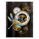 Cadran d'antiquités avec or et lances en laiton, décoré de libellules mécaniques sur arrière - plan brun rayé. Steampunk.