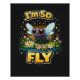 A cheerful cartoon fly with oversized red eyes stands proudly on a lily pad beneath a sparkling night sky, celebrating humor, confidence, and playful charm.
