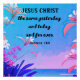 Cette belle illustration de scène tropicale montre le verset Hébreux 13:8. Il dit : "Jésus Christ le même, hier, aujourd'hui, et pour toujours. Le texte peut être personnalisé. Les couleurs sont bleu ciel, rose, blanc et violet.