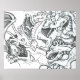 Poster Imaginaire dragons de dessin noir et blanc