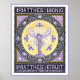 Cette affiche publicitaire magique vintage, "Matthes Honig, Matthes Fruit", a été créée par D.H.Kramer, vers 1900/1920. Il représente la reine abeille, ressemblant à une déesse féerique, entourée de quatre abeilles ouvrières. L'arrière - plan est une ruche jaune or.