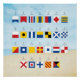 Drapeaux de code de signal pour maritime international. Ces drapeaux marins colorés comprennent à la fois la lettre et le mot sur une scène de plage aquarelle.
