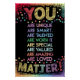 Une affiche de motivation qui rappelle à chacun à quel point ils sont vraiment spéciaux ! "You Matter" met l'accent sur les aspects uniques, intelligents, talentueux, spéciaux, valorisés, extraordinaires et aimés de chaque personne. Vibrant et stimulant, ce poster est parfait pour les salles de classe, les salles de thérapie, ou tout espace qui a besoin d'un peu plus de positivité et d'encouragement.