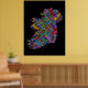 A typography text map of Ireland featuring over 590 cities and towns within Ireland. Multi-coloured text on a black background.