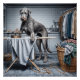 Un chien irlandais Wolfhound se tient sur ses pattes arrières tout en repassant