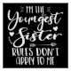 JE SUIS LA PLUS JEUNE RÈGLE DE SOEUR NE M'APPLIQUE PAS. Drôle cadeau pour soeur, belle-soeur, frère, soeur, femmes, maman, filles, bébé, bébé. C'est le cadeau parfait pour Sis, Funny soeur amant cadeau pour vous meilleure maman ou papa qui aime la fille soeur. Grand tee-shirt cadeau pour un anniversaire, Noël et tout autre cadeau donnant occasion.