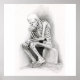 Dessin au crayon original de Jenny Speckels d'un squelette assis sur une pensée de pierre tombale.