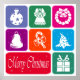 Illustration de Noël avec symboles de Noël dans des rectangles colorés