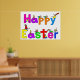 Dessin Whimsical des mots HAPPY EASTER avec des enfants divers et heureux escalade sur les lettres.