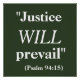 Priez-vous pour la Justice ? Voici le bon poster pour vous. Il est écrit 'Justice L'emportera' du Psaume 94:15, imprimé en lettres blanches géantes sur un arrière - plan de couleur verte chasseur cool.