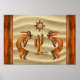 Décorez votre maison avec cette affiche unique "One of a Kind" au sud-ouest de Kokopelli! Il comprend deux Kokopelli sud-ouest en cuivre jouant la Flûte et dansant sous le soleil sur un Arrière - plan de sable...Entouré par une bordure en cuivre! Design D'Art Original Par L'Artiste Kerry Miller.