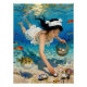 "Mio’s Descent" - An Ocean Portrait. Avec un visage calme et un trait gracieux, un plongeur Ama ramasse des perles sous la lumière qui ondulent. Son panier est rempli de trésors de la mer tandis que des poissons glissent à côté. Cette peinture capture non seulement le travail, mais la poésie : la descente d'une femme dans l'eau devient une histoire d'harmonie entre le corps, l'âme et l'océan.