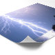 Image frappante prise par le National Weather Service d'individus près de l'océan avec un puissant coup de foudre qui coule du ciel à l'eau.
