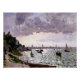 "The Seashore at Sainte-Adresse" capture une scène pittoresque le long de la côte normande, à proximité de la ville de Sainte-Adresse. Cette oeuvre d'art se distingue par sa représentation d'une journée tranquille au bord de la mer, reflétant une exploration de lumière et de couleur. Ce tableau offre une vue panoramique sur le littoral, avec des figures qui se promènent tranquillement le long de la plage et profitent de la brise océanique. La scène est encadrée de parasols colorés, de bateaux ancrés près du rivage, et l'horizon lointain se mêlant au ciel et à la mer. Les coups de pinceau sont animés et fluides, captant le jeu de la lumière sur l'eau et la plage. "The Seashore at Sainte-Adresse" est un exemple de style impressionniste, caractérisé par son accent mis sur la capture de moments éphémères et d'effets atmosphériques. La palette est lumineuse et vibrante, avec une gamme de bleus, verts et blancs, reflétant la fraîcheur et la clarté de l'atmosphère côtière. Ce tableau célèbre non seulement la beauté naturelle de la côte normande, mais aussi une fascination pour la lumière et ses effets transformateurs sur le paysage.