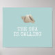 "The sea is call" est le message sur cette jolie affiche sur le thème de la plage, mais on peut l'customiser à la personnaliser avec votre ville balnéaire préférée, votre nom de famille ou une citation. Illustration d'une coquille de conque dressée contre un arrière - plan bleu doux et vert, elle est parfaite pour tout décor de maison de plage.