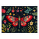 Un papillon rouge vibre contre l'arrière - plan d'un mystérieux jardin de nuit.