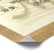 Différents styles de calligraphie du mot "musique" — en différentes langues, y compris le braille — sont affichés sur un fond comprenant une page du manuscrit manuscrit original à la 9ème Symphonie de Beethoven. Les bordures étroites d'une texture de grain de bois complètent l'illustration, ce qui en fait un tout organique qui serait certainement un atout sur le mur de la maison ou du studio d'un musicien ou d'un amateur de musique.