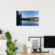 Poster Lac de montagne, Forêt, Cabines, Dusk