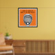 Poster de gardien de but en crosse, avec bâton de lessive sur arrière - plan orange.