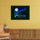 Cette affiche d'art unique de style amérindien présente un canot haïda sacré amarré sur un lac au clair de lune, avec Ravens représentant des symboles de mysticisme et de puissance. Le visage souriant de la Lune a été créé à partir d'un motif de totem haïda représentant la Lune. "Le canot sacré" est également partagé sur divers autres objets cadeaux pour diffuser le message du caractère sacré de la faune et de nos lieux sauvages. Les membres des Premières nations haïdas connaissent si bien la fragilité de l'équilibre naturel. C'est pourquoi j'utilise souvent les symboles des Premières nations pour décrire la beauté de nos lieux naturels et les animaux précieux qui les habitent. Si nous pouvons apprendre à vivre en harmonie avec la Nature et non pas en contradiction avec elle, nous aurons la chance de réparer les dommages causés par la pollution, l'exploitation minière, le forage et l'abattage de nos vastes terres forestières. Si nous continuons sur notre voie actuelle, la planète tombera dans un grave déséquilibre qui ne peut être restauré. Aidez-nous à diffuser le message en portant nos T-shirts et nos Sweat - shirts à capuche et en affichant nos Stickers pare-chocs qui promeuvent l'harmonie de l'environnement et la protection de la faune. 25 % du produit de la vente de tout article de cette collection est donné directement à Defenders of Wildlife à l'adresse suivante : www.defenders.org