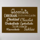Hé, tu as du chocolat sur ton affiche ! En fait, avec cette affiche Langues du chocolat, vous aurez du chocolat en anglais, portugais, espagnol, roumain, néerlandais, allemand, suédois, français, danois, polonais, norvégien, italien et finnois sur votre affiche ! Cette affiche brun chocolat présente une écriture blanche dans une variété de polices qui se lisent, "Chocolade Chocolade Chocolade Chocolat Chocolat Chocolade Tchékolade Sjokolade Cioccolato Suklaa". Mmmm... Chocolat.
