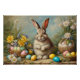 Poster Lapin de Pâques vintage avec Paniers de Pâques, Fl