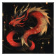 Cette oeuvre d'art saisissante présente un dragon chinois puissant, aux couleurs vives de rouge et d'or, contre un arrière - plan sombre aux accents d'or géométrique. Le corps serpentin du dragon se courbe élégamment, présentant ses échelles détaillées et sa crinière flottante. Cette illustration incarne la force, la chance et la mythologie chinoise traditionnelle.