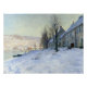 "Lavacourt, Sun and Snow" est une description captivante d'un paysage hivernal. La scène capture le village de Lavacourt, situé le long de la Seine, sous une couverture de neige, avec le soleil projetant une lumière chaude et dorée sur le paysage gelé. Le tableau représente un champ enneigé avec quelques arbres éparpillés et une vue lointaine sur les bâtiments du village, partiellement obscurci par la brume hivernale. La lumière du soleil se réfléchit sur la neige, créant un effet chatoyant et rehaussant le contraste entre la neige blanche croustillante et le ciel chaud et brillant. Le brossage à perte et la palette de couleurs vibrantes apportent un sens du mouvement et de la vie à la scène hivernale tranquille, soulignant l'interaction entre la lumière et l'ombre. Le tableau illustre la capacité de capturer la beauté sereine de la saison hivernale et les nuances subtiles de lumière et de couleur dans un paysage.