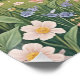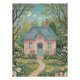 Cette oeuvre d'art fantaisiste représente un charmant cottage rose niché au coeur d'une forêt luxuriante et enchanteresse. Le cottage, avec son toit bleu ardoise et sa porte turquoise accueillante, est entouré d'une profusion de fleurs sauvages colorés dans une palette douce et printanière. Un chemin en pierre sinueux mène le spectateur à la porte d'entrée, tandis que la scène est encadrée par les branches embrassantes de deux grands arbres stylisés. Le ciel est un turquoise serein avec une douce lune et des nuages clairs, ajoutant à l'atmosphère magique et conte. Cette pièce évoque un sentiment de paix, de nostalgie et de charme rustique.