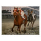 Classic action scène bondée de la Match Race 1938, dit être la course de cheval la plus importante du 20ème siècle. Underdog Seabiscuit ravit ses propriétaires. D'une peinture originale de course à cheval de Daniel Fishback.