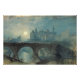 Château d'Alnwick. Joseph Mallord William Turner (1775 - 1851). Un beau paysage nocturne dans les tons bleu foncé. Au premier plan se trouve un groupe de cerfs. Au milieu il y a un pont au-dessus de la rivière. La lune est dans le ciel du coucher du soleil. Reproduction d'oeuvres d'art célèbres dans le domaine public.