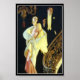 J. C. Leyendecker 1932 peinture d'un couple glamour marchant dans un grand escalier habillé aux neuf neuf en tenue de soirée.