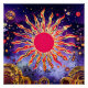 "Feu dansant du Cosmos" Le Soleil. Les tourbillons hypnotiques du soleil et les éruptions d’or donnent l’illusion du mouvement, comme si les flammes solaires étaient vivantes. Un chef-d'oeuvre complexe célébrant l'énergie, la chaleur et l'équilibre céleste avec des couleurs rouge, orange, jaune et bleu.