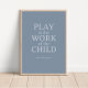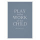 Une affiche avec la citation de Maria Montessori, "Jouer est l'oeuvre de l'enfant" dans les tons bleus.
